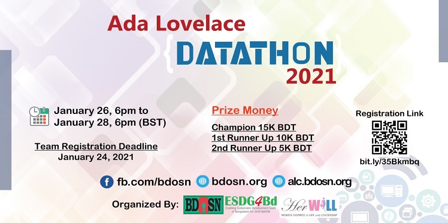 তথ্য প্রযুক্তিতে নারীর অবদান উদযাপন করার লক্ষ্যে আগামী ২৯ এবং ৩০ জানুয়ারিতে দুইদিনব্যাপী অনুষ্ঠিত হতে যাচ্ছে অ্যাডা লাভলেস সেলিব্রেশন ২০২১। কম্পিউটার প্রোগ্রামিং এর প্রবর্তক অ্যাডা লাভলেস এর নামে আয়োজিত এ উৎসবের প্রস্তুতি শুরু হয়েছে চারদিনব্যাপী ডাটাথন কর্মশালার মধ্য দিয়ে। কর্মশালাগুলো যৌথভাবে আয়োজন করছে বাংলাদেশ ওপেন সোর্স নেটওয়ার্ক এবং HerWILL.