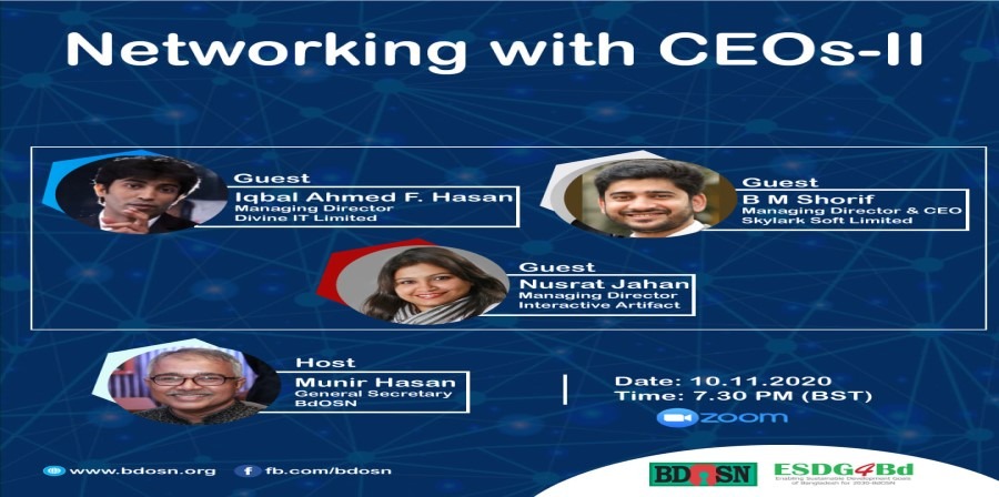 সাধারণত কোনো কোম্পানিতে কিভাবে নিয়োগ দেওয়া হয় বা কিভাবে নেটওয়ার্ক তৈরি করতে হয় সেসব বিষয় নিয়ে একটি অনলাইন ওয়েবিনার আয়োজন করে বাংলাদেশ ওপেন সোর্স নেটওয়ার্ক-বিডিওএসএন। গত ১০ নভেম্বর এই ওয়েবিনারে অংশ নেন, ডিভাইন আইটি লিমিটেড এর ম্যানেজিং ডিরেক্টর ইকবাল আহমেদ এফ. হাসান, স্কাইলার্ক সফট লিমিটেড এর ম্যানেজিং ডিরেক্টর এবং সিইও বি এম শরীফ এবং ইনোভেটিভ আর্টিফ্যাক্ট এর ম্যানেজিং ডিরেক্টর নুসরাত জাহান। অনুষ্ঠানটি সঞ্চালনা করেন বিডিওএসএনের সাধারণ সম্পাদক মুনির হাসান।