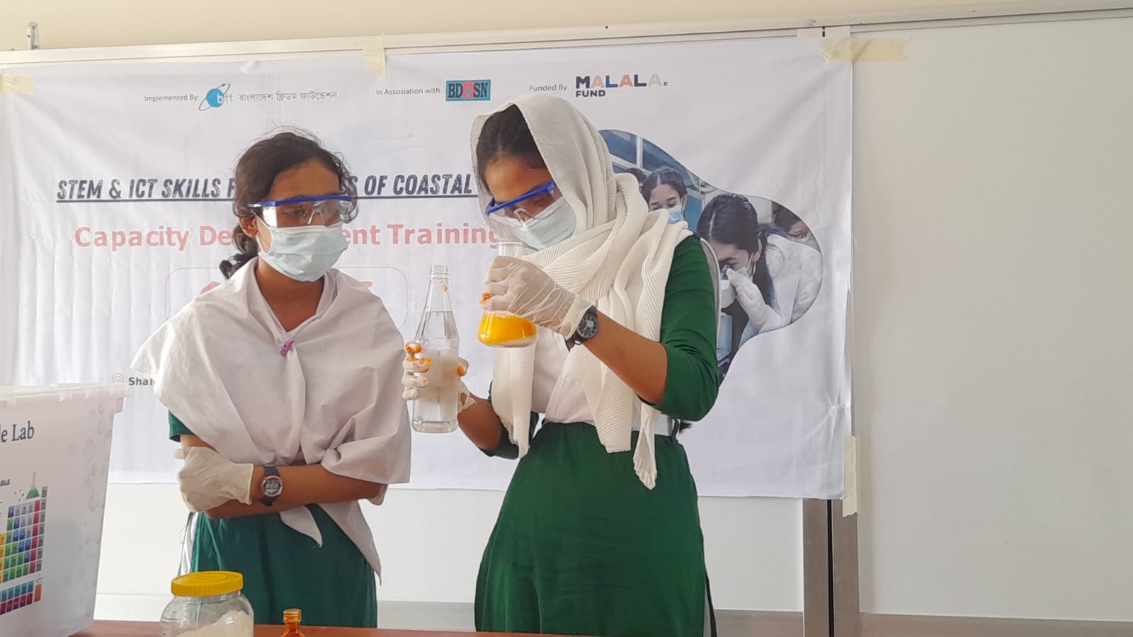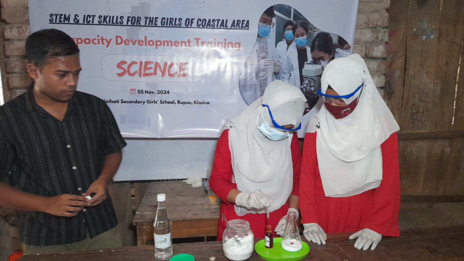 The STEM & ICT Skills for the Girls of Coastal Area (SISGCA) initiative, supported by the Malala Fund in collaboration with BdOSN, conducted science classes on September 9, 2024, at Shahid Ali Ahammad Govt. Girls High School and Shahid Kamel Model High School in Tala, Satkhira. A total of eighty students from grades six to eight participated in these educational sessions.