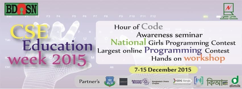 BdOSN will celebrate the Computer Science Education Week from 7-15th December 2015. A nationwide actvities were planned to mark this wee which includes but not limited to Hour of Code, Online Programming Contest, National Girls Programming contest etc. The preparatory activities will beging with a "Programming Adda" to be held in Biswa Sahitya Kendra on 21st November at 4pm.
