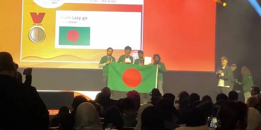 বিশ্বের সম্মানজনক রোবোটিকস প্রতিযোগিতা ওয়ার্ল্ড রোবট অলিম্পিয়াড ২০২২-এ প্রথমবারের মতো সরাসরি অংশ নিয়েই ফিউচার ইঞ্জিনিয়ার্স বিভাগে ব্রোঞ্জপদক পেয়েছে বাংলাদেশের ‘টিম লেইজি-গো’ দল। জার্মানির ডর্টমুন্ডে অনুষ্ঠিত তিন দিনের এ আসরে ২৪ দেশের সঙ্গে প্রতিযোগিতা করে এ সাফল্য পায় দলটি। বাংলাদেশ থেকে অংশ নেওয়া ‘রোবনিয়াম বাংলাদেশ’ দল ফিউচার ইনোভেটরস বিভাগে অষ্টম স্থান অর্জন করেছে। গত বছর অনলাইনে অনুষ্ঠিত ওয়ার্ল্ড রোবট অলিম্পিয়াডে অংশ নিয়ে বাংলাদেশ দশম স্থান অর্জন করেছিল।