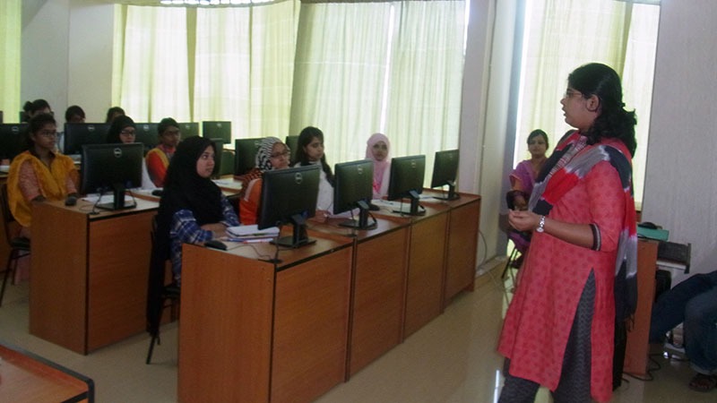 Workshop on "Introduction to algorithms and how to apply them in computer programming" held successfully in the Charle Babage lab of Daffodil International University (DIU) on 5-6 June 2015. BdOSN in collaboration with Code it, Girl organized the workshop for the girls. DIU hosted the workshop. 18 female students from Dhaka University, BUET, North South University, Jahangirnagar University, National University etc joined the workshop. Bristy Sikder, a student of Massachusetts Institute of Technology (MIT) conducted the workshop while Mirfat Sharmin and All Rabbi of BdOSN facilitated the same. The workshop covered the basic algorithm required for computer programming. Students learned the basics and application of Ad-Hoc Problems, greedy algorithms, Divide and Conquer: Merge Sort, Graphs, BFS, DFS, Jug Problem, etc.