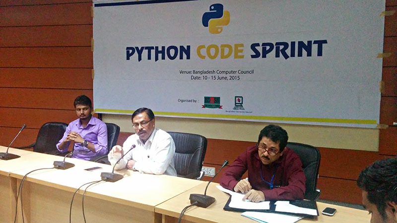 The python code sprint, a five day long 60 hours onsite training and project building activities were started on 11th instant. Before that 18 participants were selected through a online exam for 51 applicant. The sprint covered different issues related to design, develop and deploy a complete project from scratch to the end. The participants learn the industry best practices from the industry leaders as well as get a chance to apply them in a real life project. Mr Enayet Hossain Rajib of BdOSN told that they will organize similar programme in different parts of the country in coming days.
