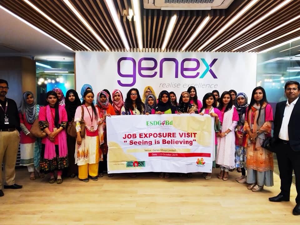 ESDG project of Bangladesh Open Source Network (BdOSN) has recently organized a Job Exposure Visit on 22 October, 2019 as a part of job placement with 20 female students of different levels of CSE department of City University. On the other hand, Genex, part of the IPE Group UK, is the leading outsourcing providers of customer experience management and trusted by world’s leading brands where they achieve results through transforming their clients' businesses with delivering excellence in customer experience. Moreover, they are experts in people interactions which gives them the edge in delivering a superior customer experience in every contact.