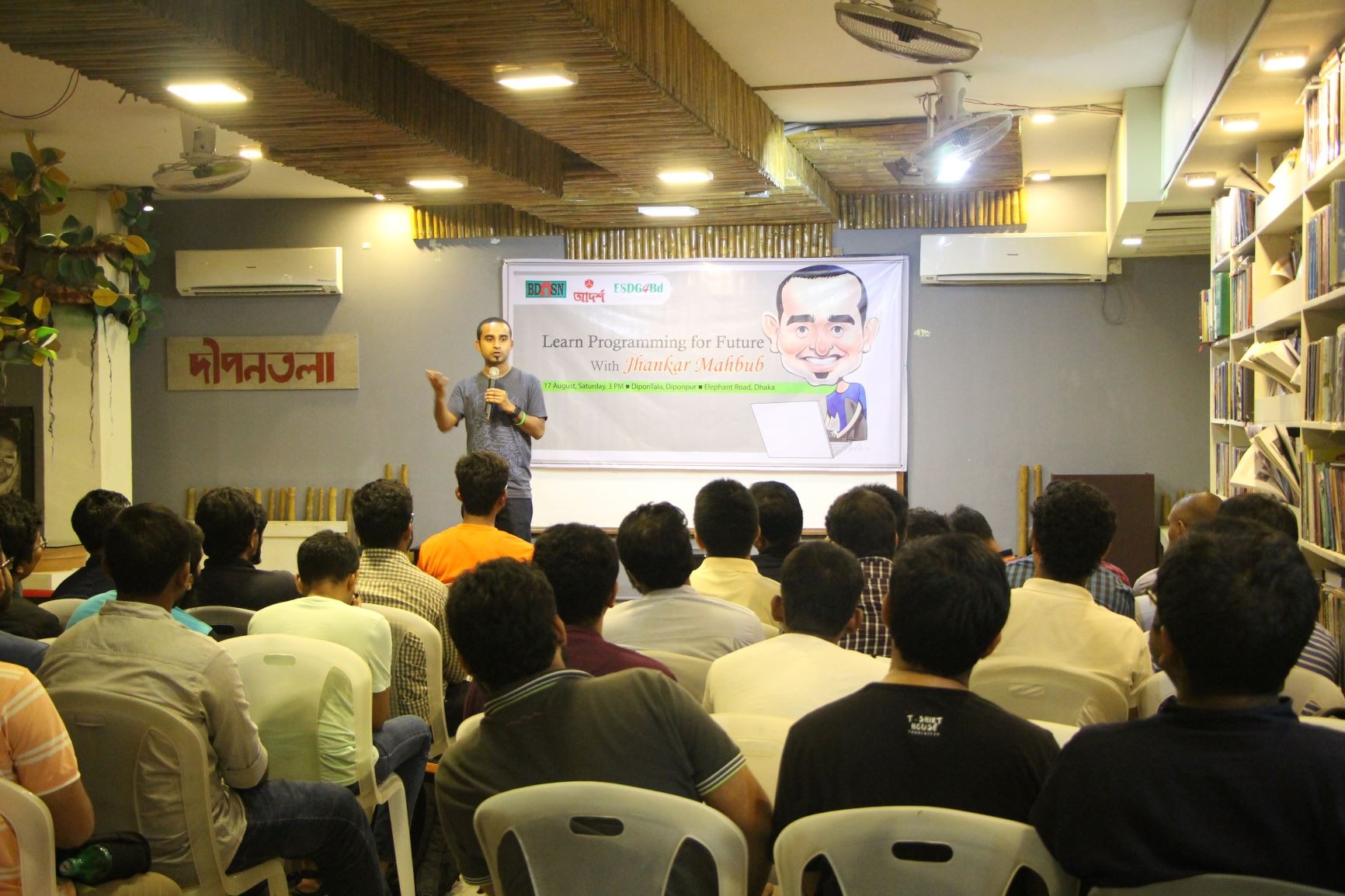The seminar titled 'Learn Programming for Future' was held at Dipanpur, at Kataban in the capital at three o'clock on 17 August, 2019 . The seminar was run by Jhankar Mahbub, a popular programming book writer and senior web developer at Nielsen Company in Chicago, USA.