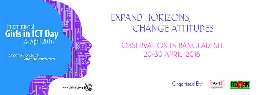 Bangladesh Open Source network (BdOSN) and Bangladesh Women in IT (BWIT) will celebrate the international Girls in ICT day with a handful programme. ITU is celebrating the 4th Thursday of April as "International Girls in ICT Day". This year the day will be observed on 28th of April. However, because of the resource constrain and to reach more girls, BdOSN and BWIT will organize programme from 20th April to 30th April 2016.