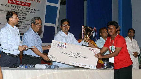 63 teams consisting of 3 girls in each team from across the country mark the successful completion of National Girls Programming Contest (NGPC)-2015 held on 12th December at Daffodil International University campus Dhaka. SUST Twinkle, solving four out of six problems became the champions while CUET Sparkles and DU Team 1 became first and second runner up respectively. Advocate Zunaid Ahmed Palak, MP honourable state minister of ICT handed over the prizes to the winners. Codewizerd of 3 high school girls tops among the high school category. A special prize was also awarded to the youngest team from Netrokana. The three members were 10, 11 and 11 years old.
